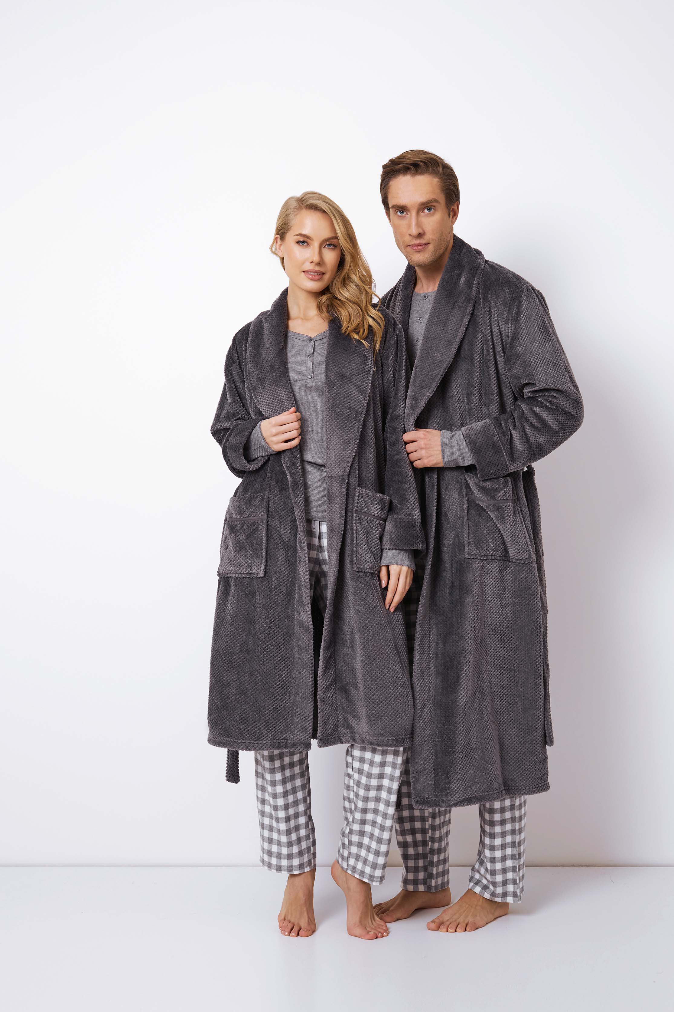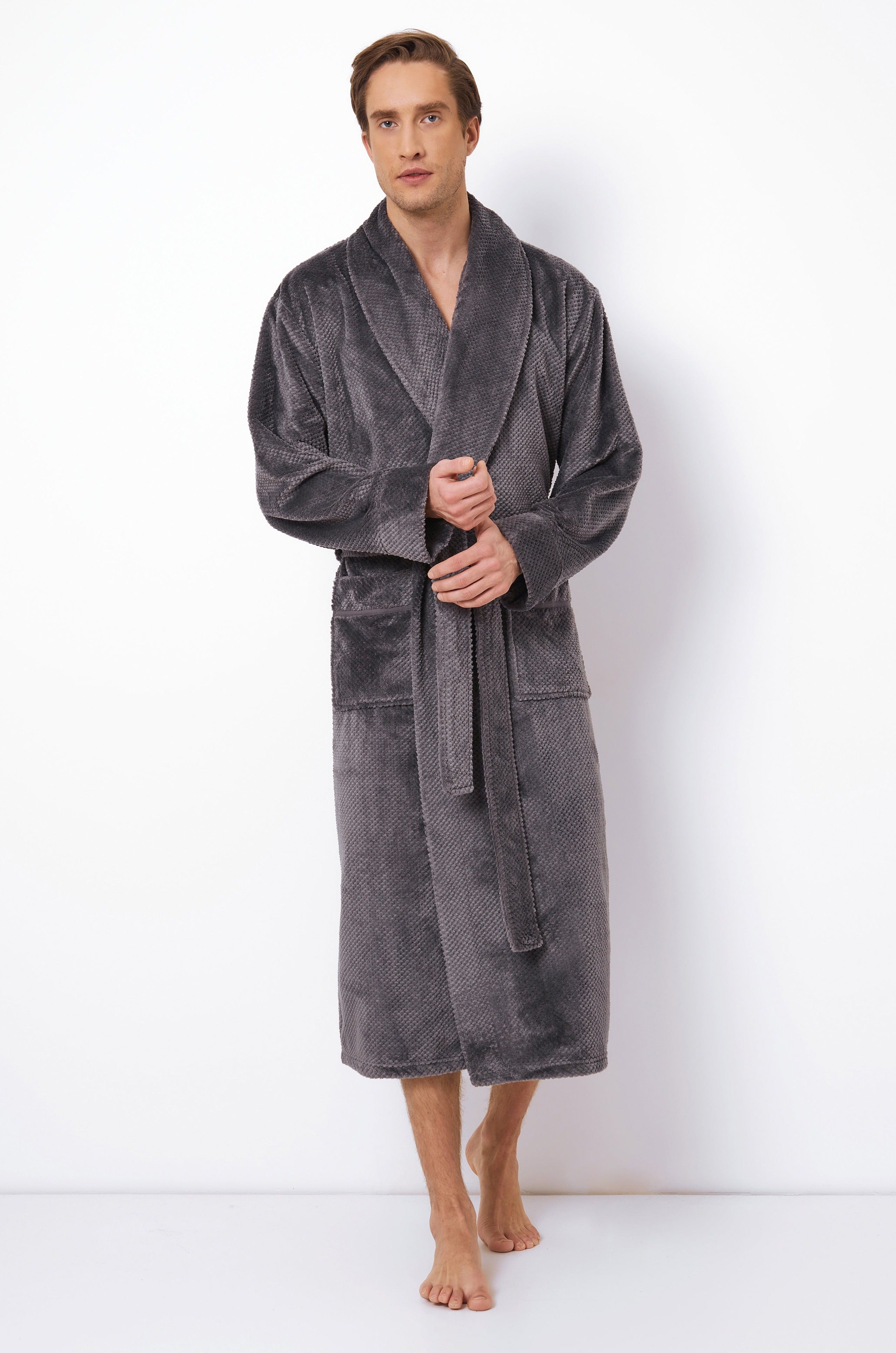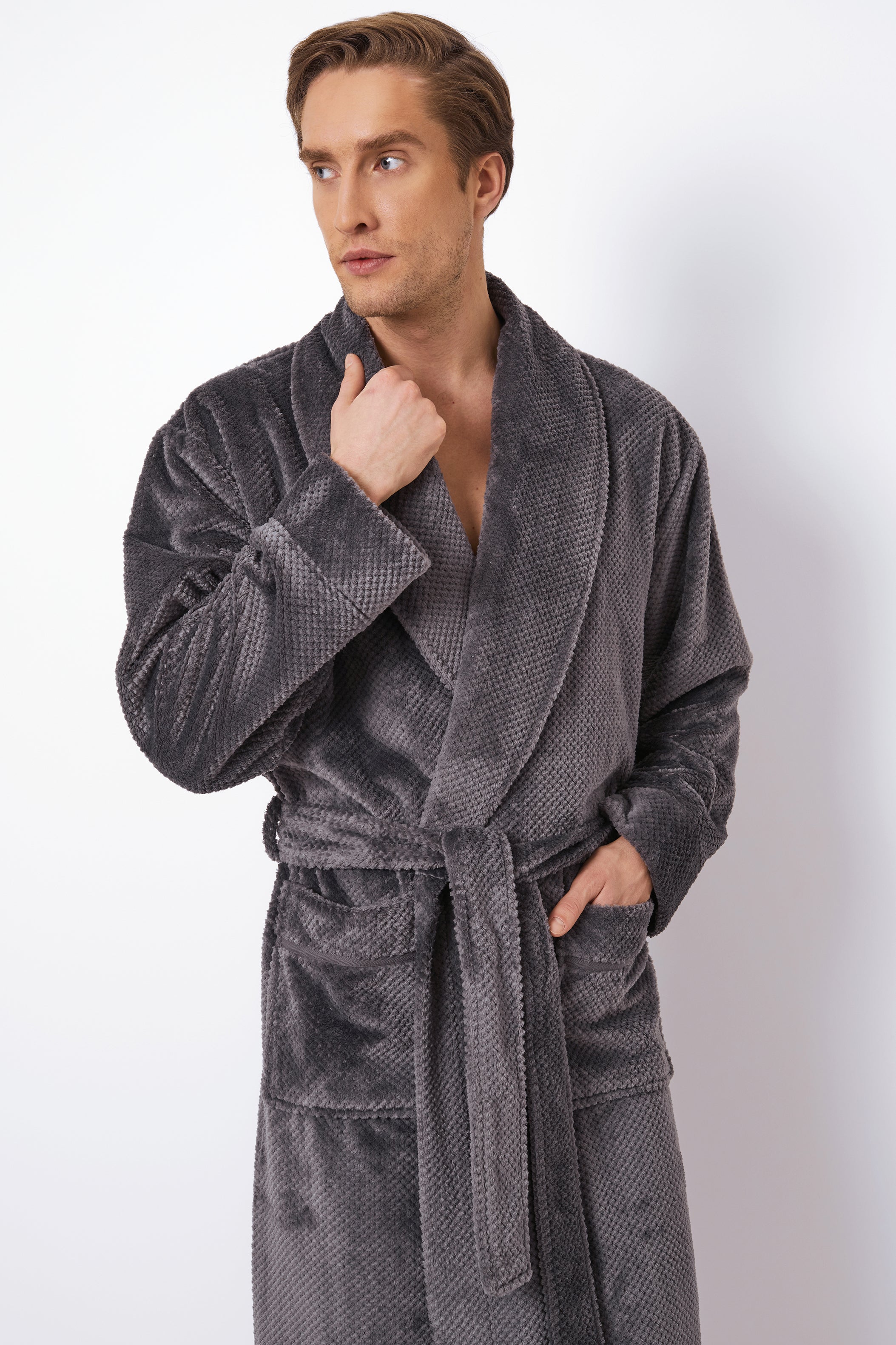 Elegant bathrobe Kevin is made of soft shiny small jacquard fabric.