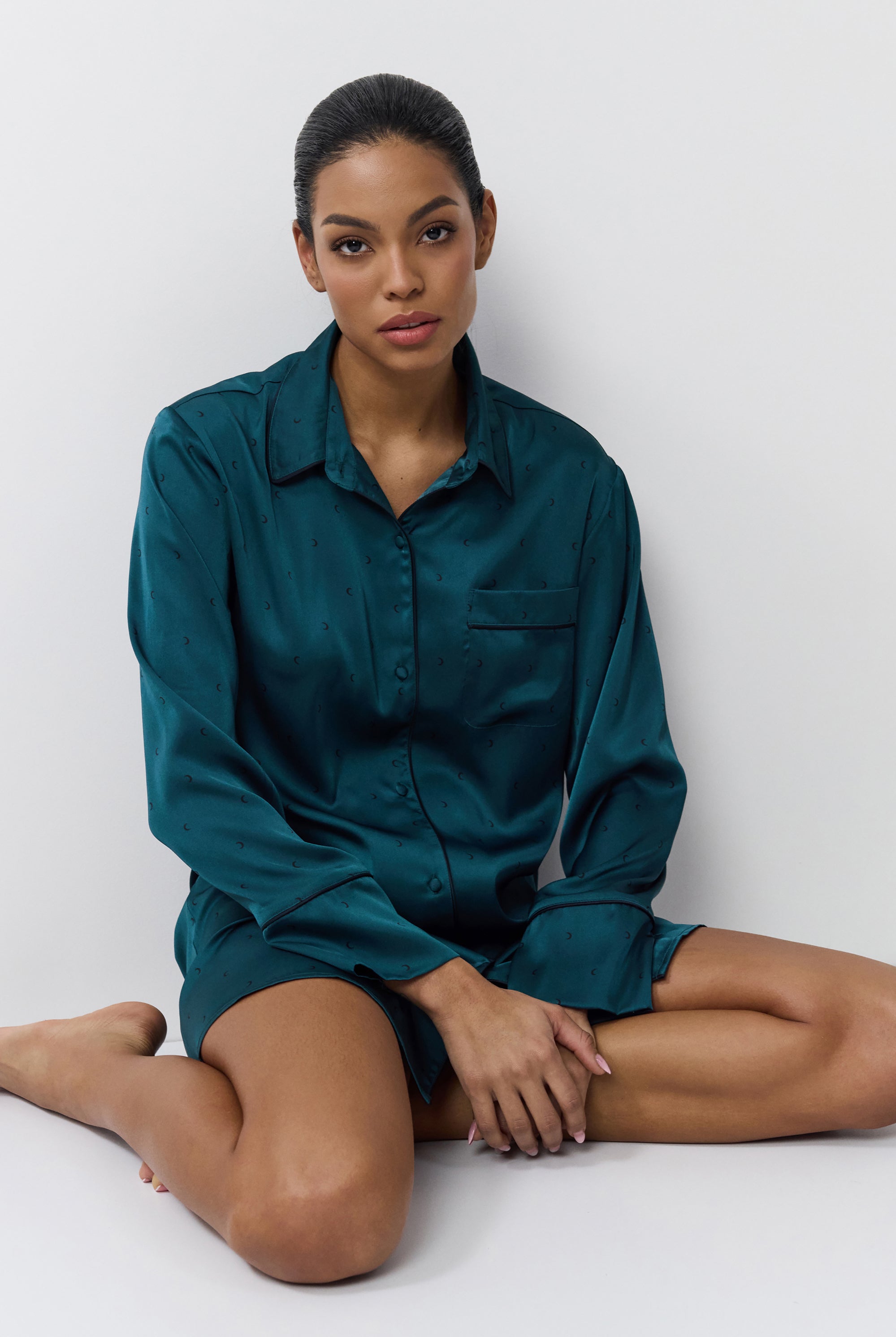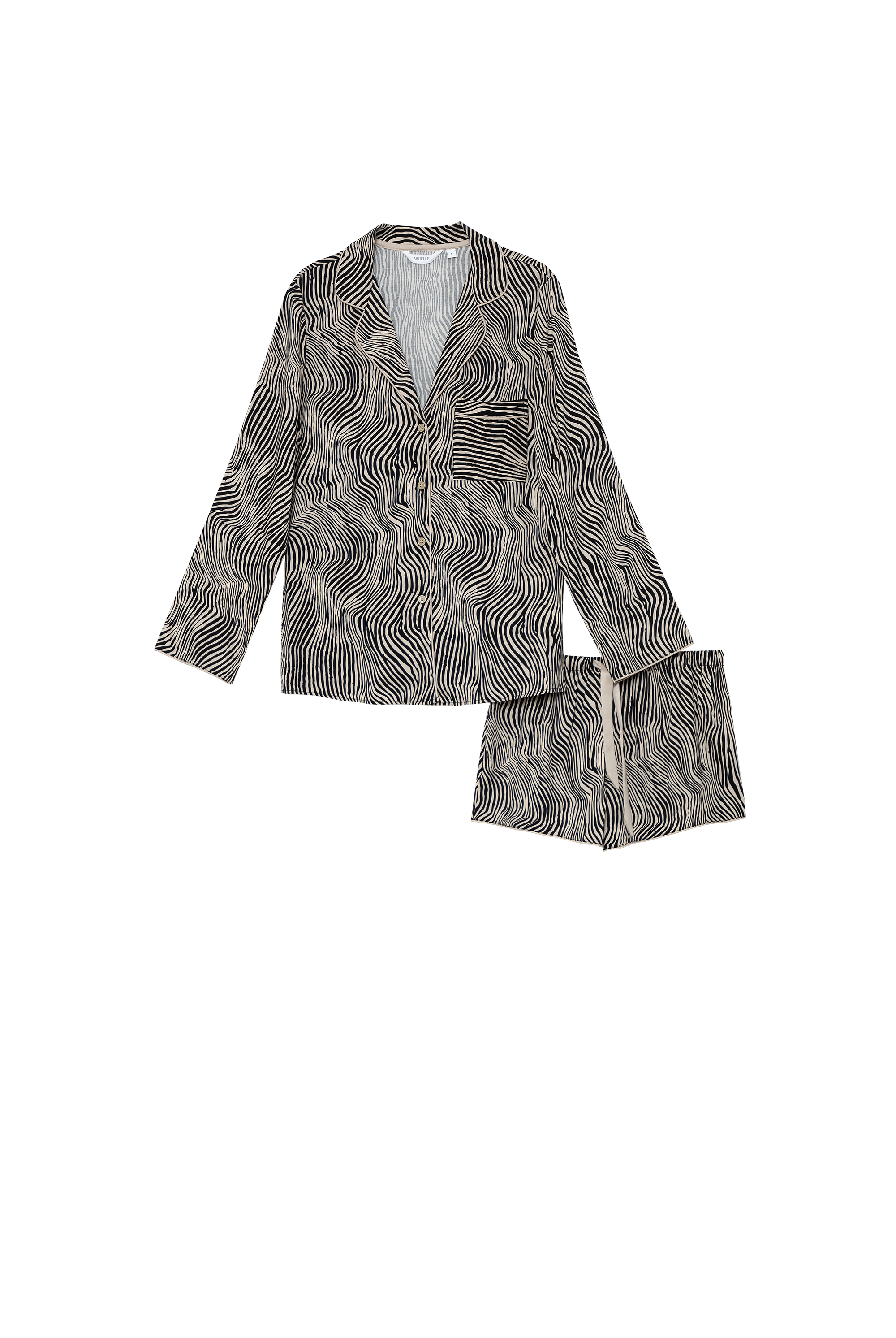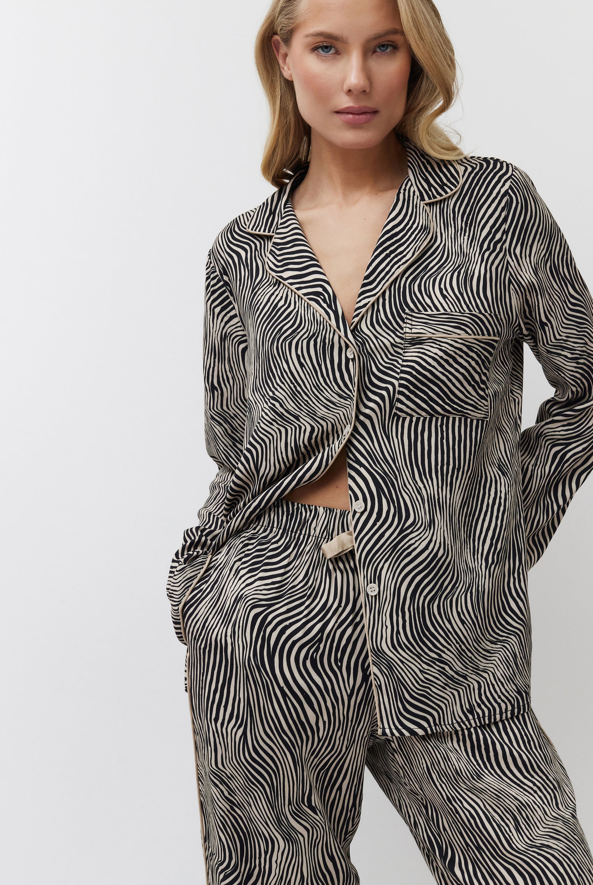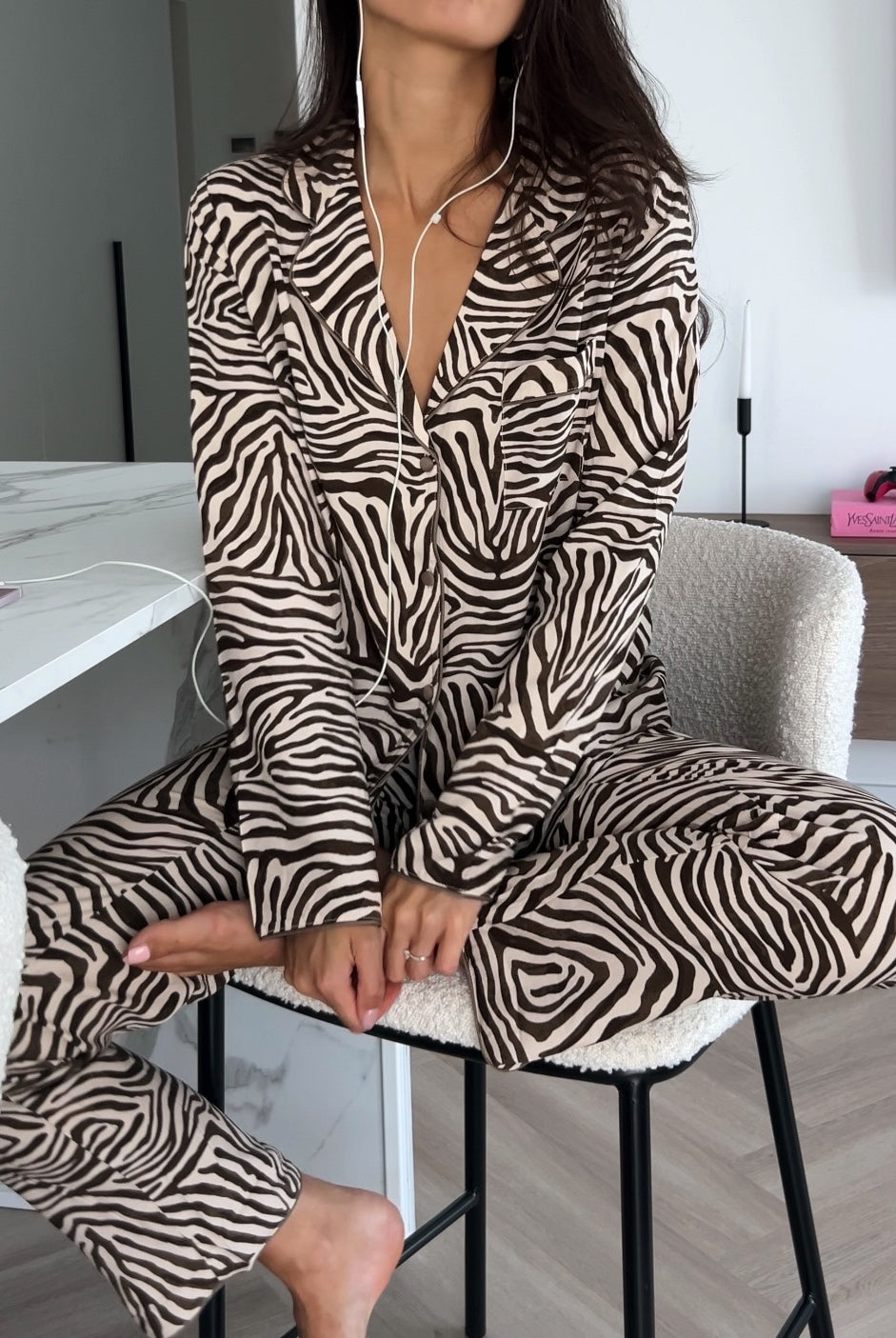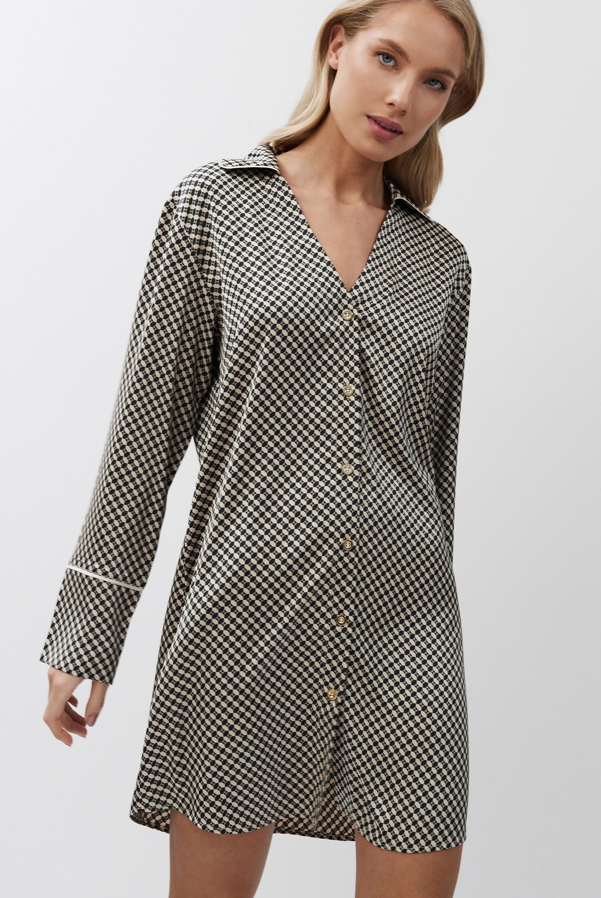 Discover bold contrasts, timeless silhouettes, and modern details across pajamas, robes, nightgowns, loungewear sets, slippers, and socks. Blending comfort with sophistication, the collection redefines homewear – fearless, elegant, and made for self-expression.