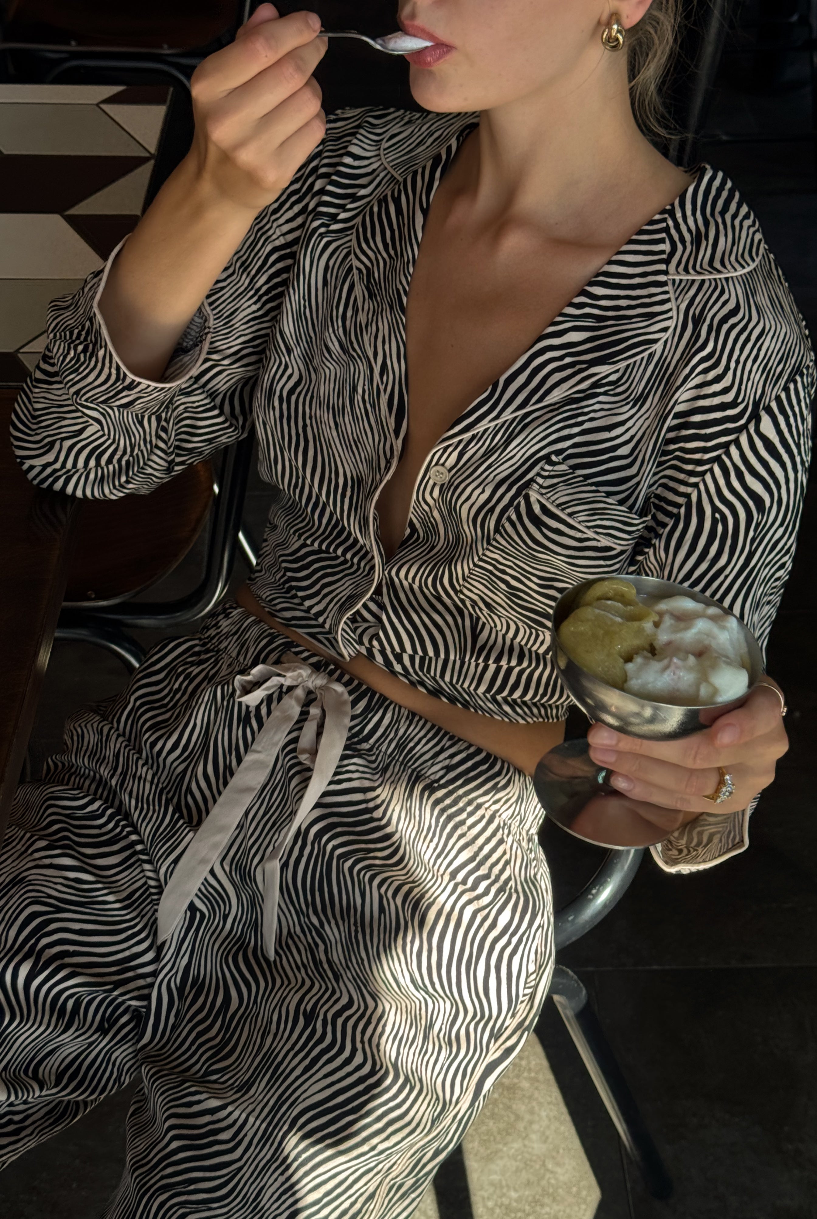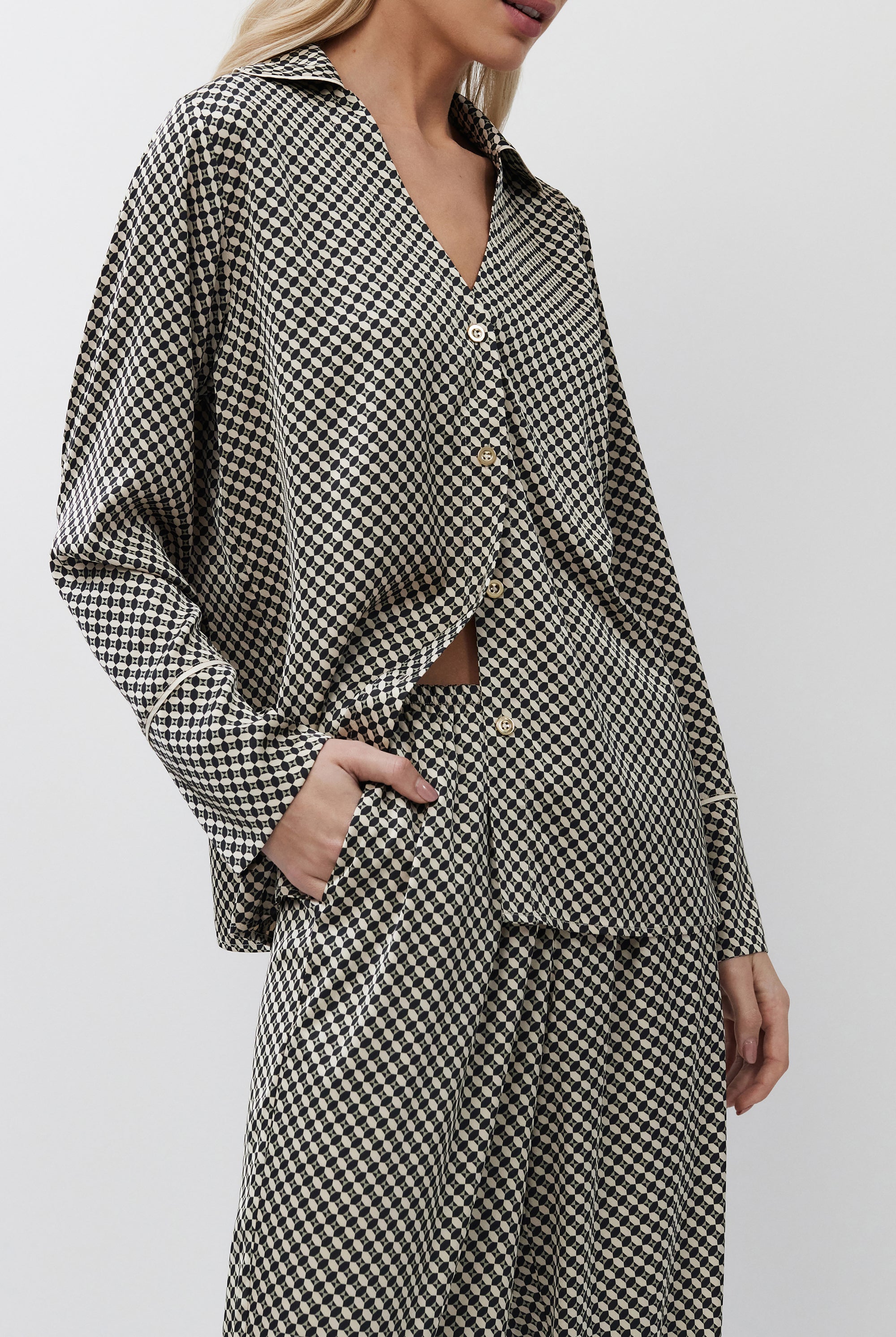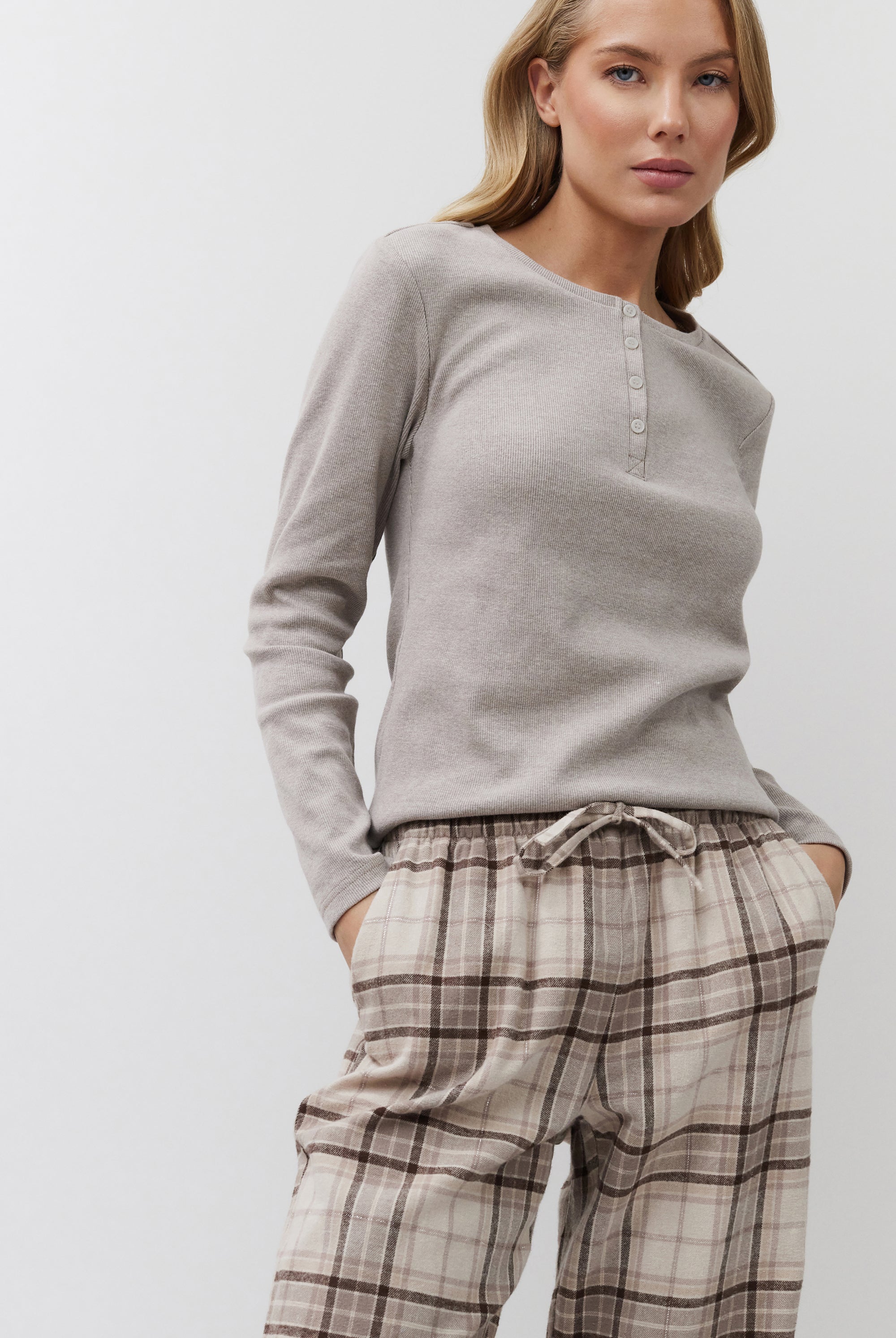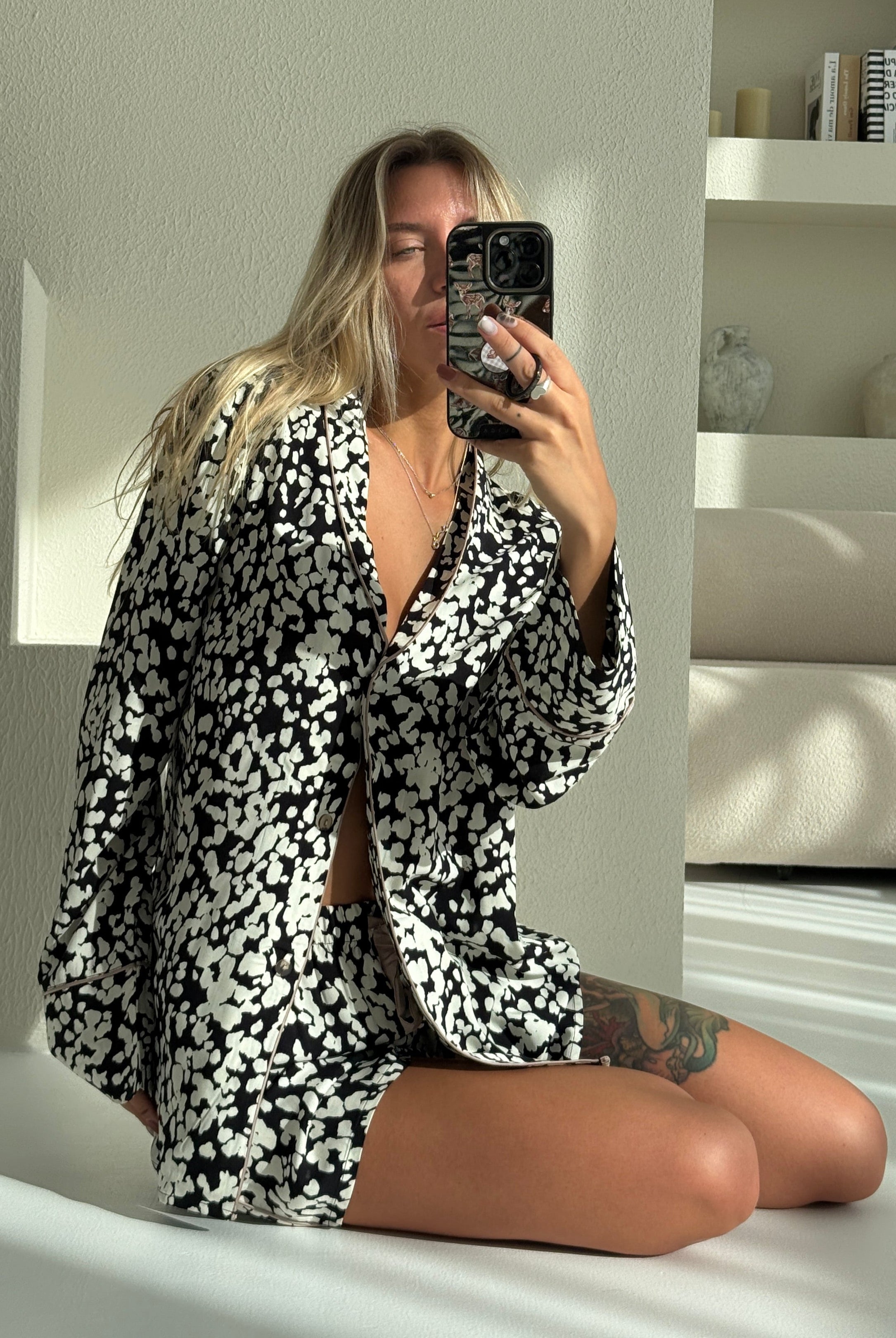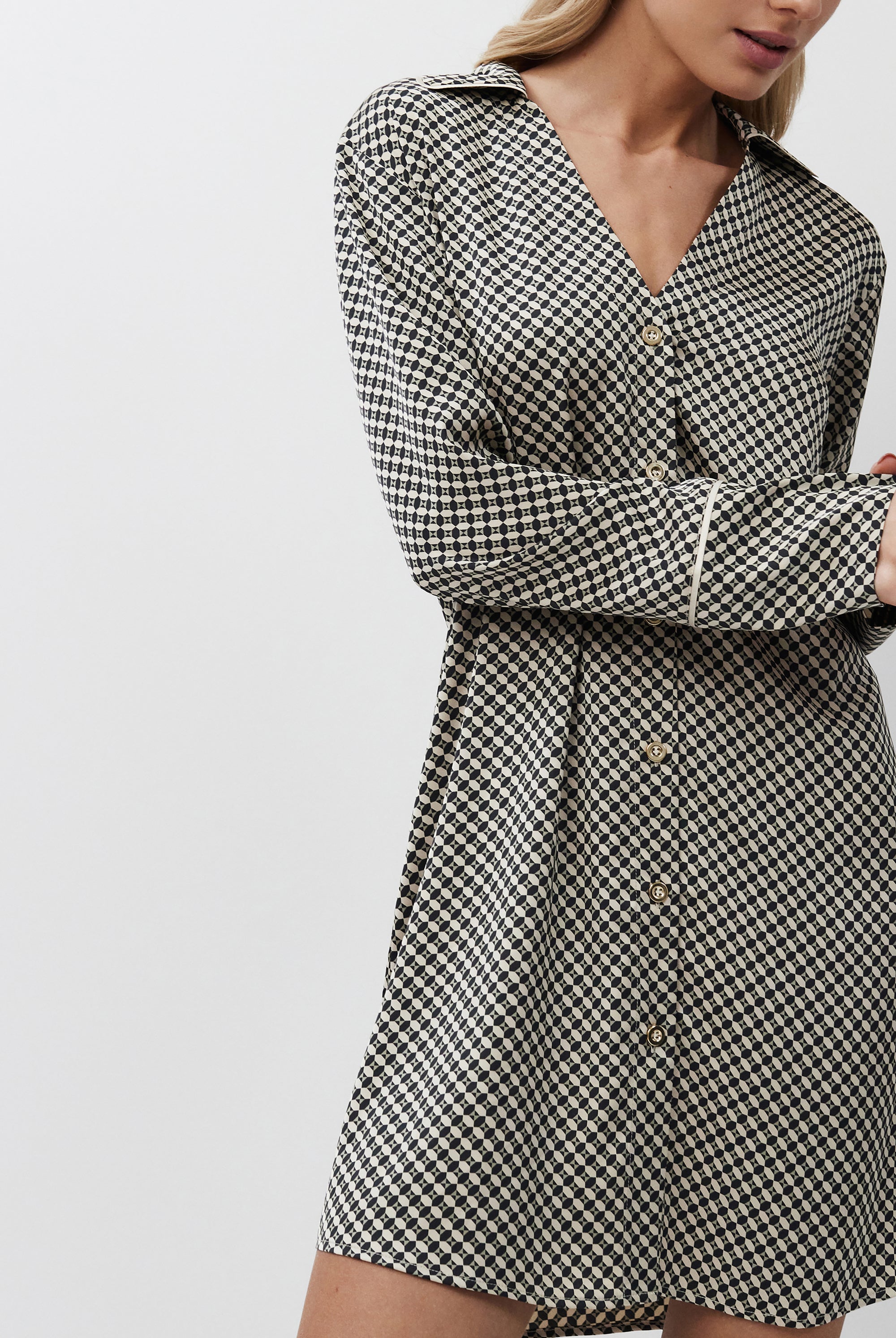 Discover bold contrasts, timeless silhouettes, and modern details across pajamas, robes, nightgowns, loungewear sets, slippers, and socks. Blending comfort with sophistication, the collection redefines homewear – fearless, elegant, and made for self-expression.
