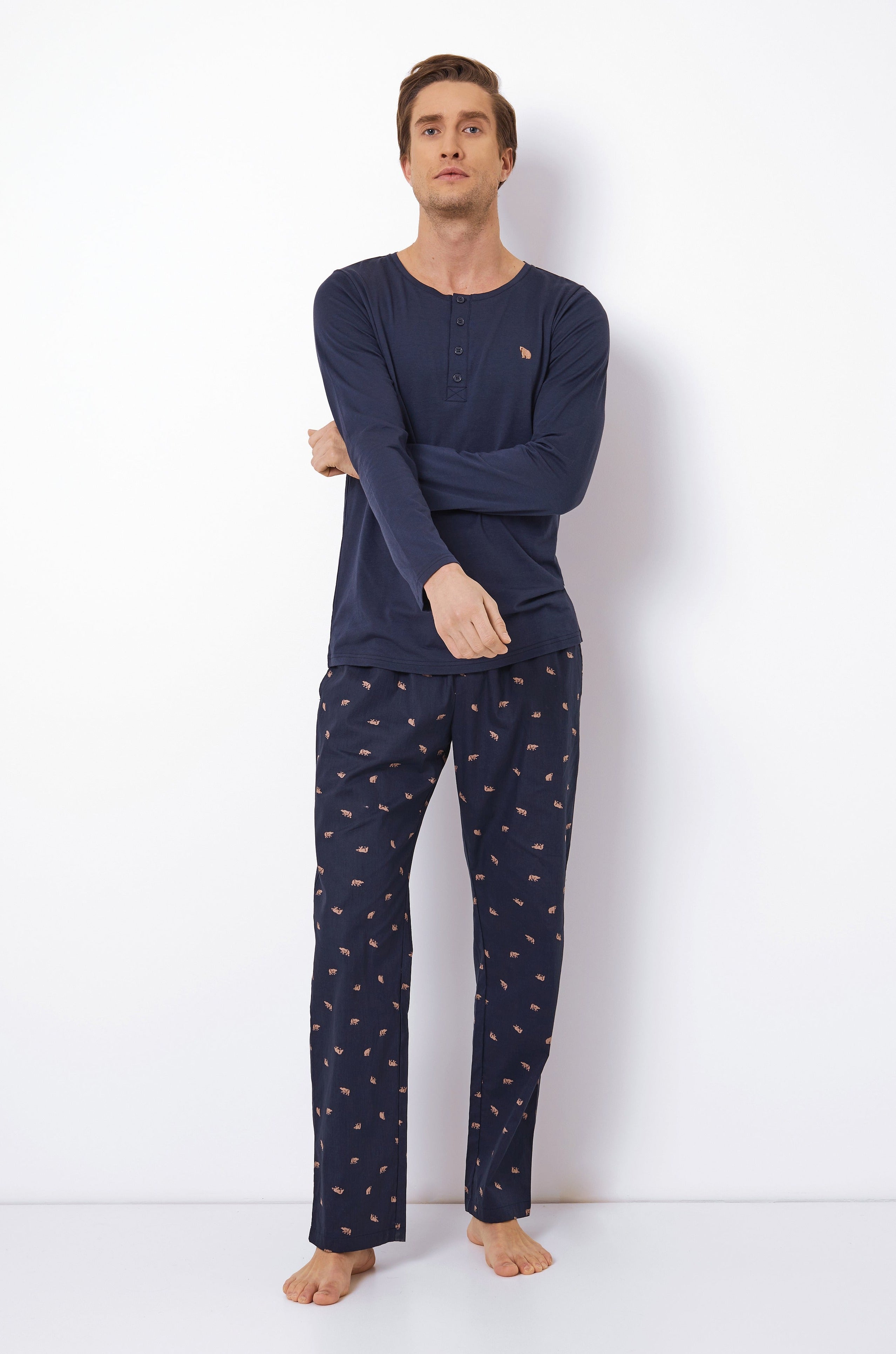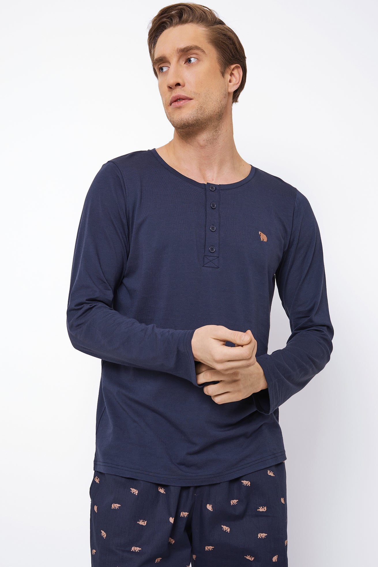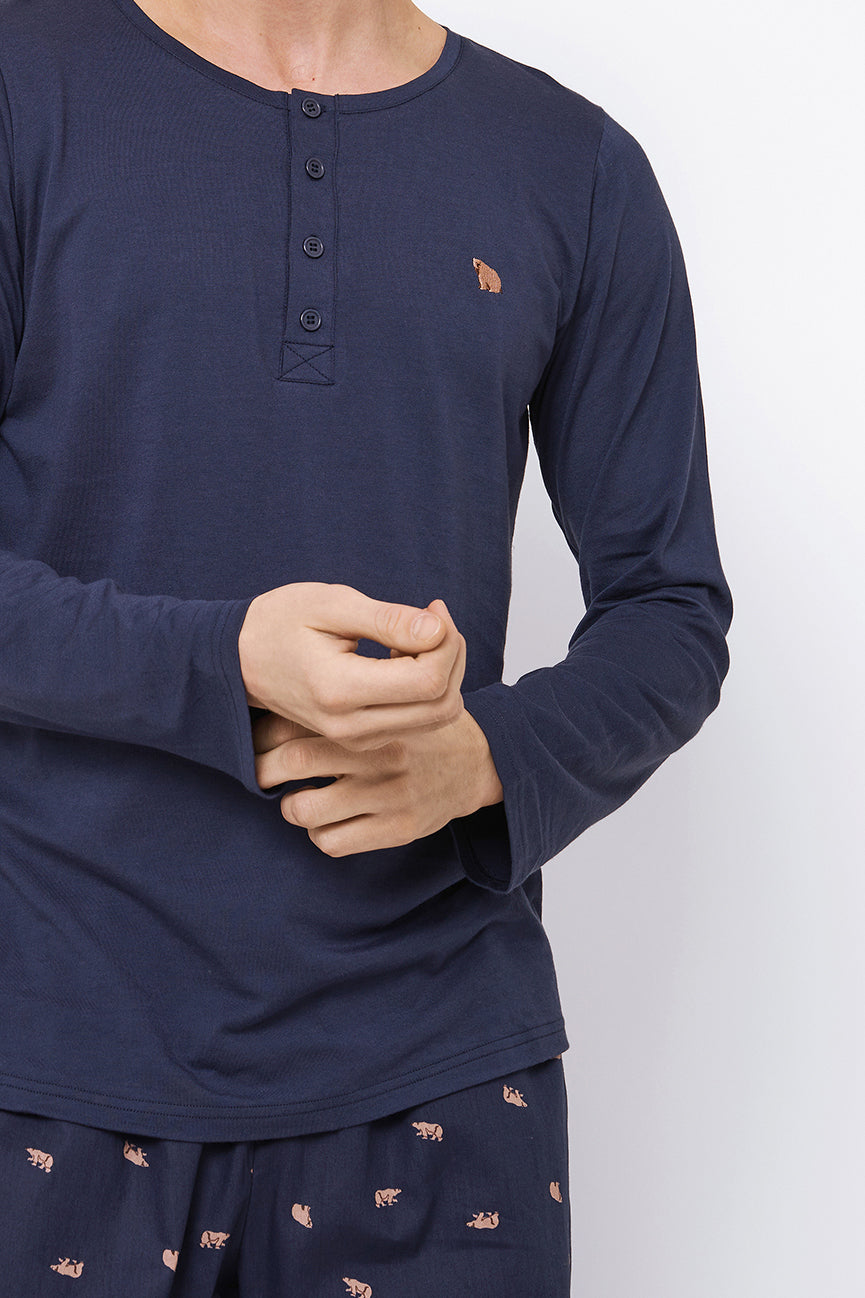 - The long-sleeved cotton/modal top is decorated with four buttons and bear embroidery at the front.
