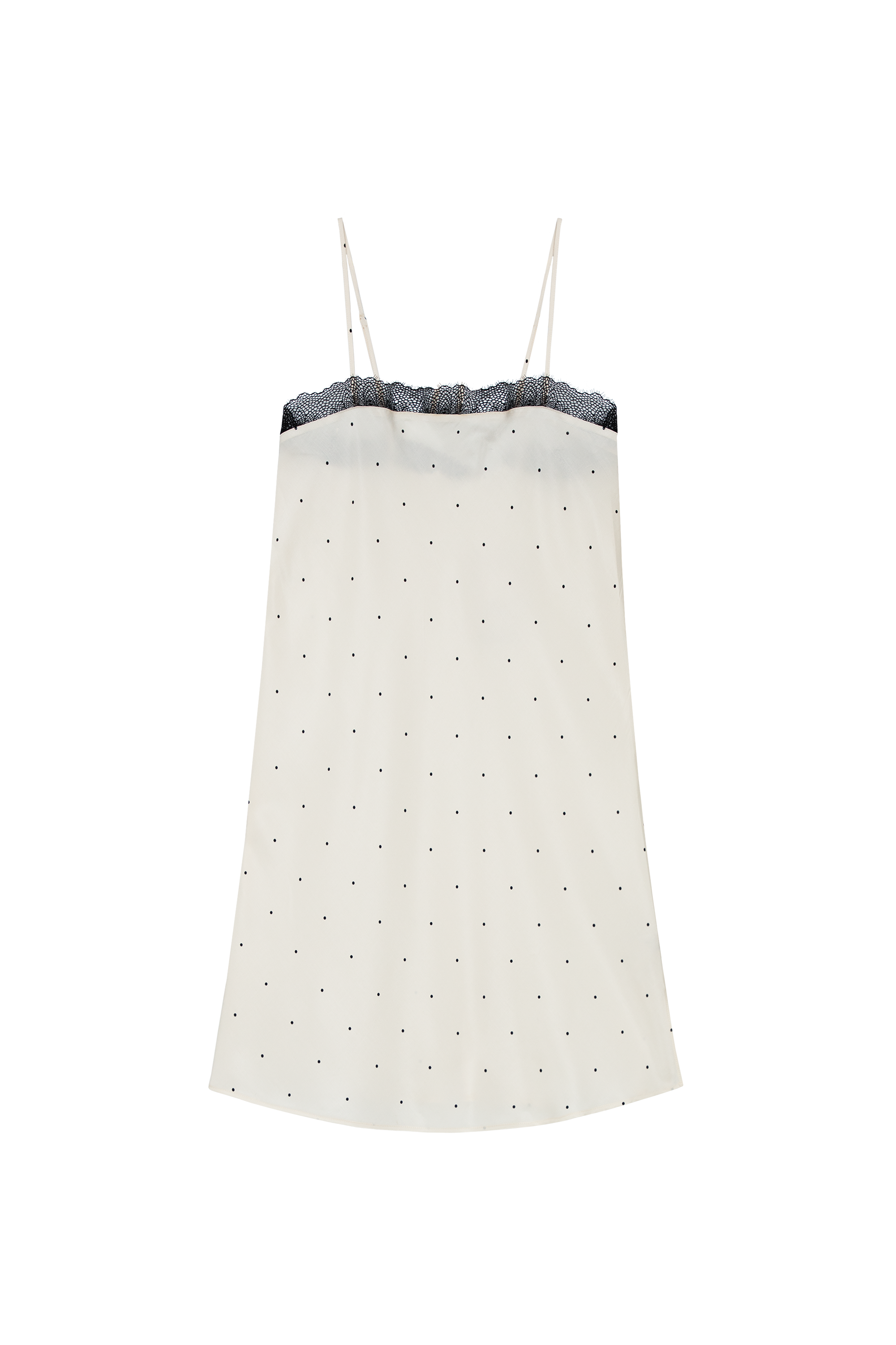 - Adorned with delicate black lace along the neckline.