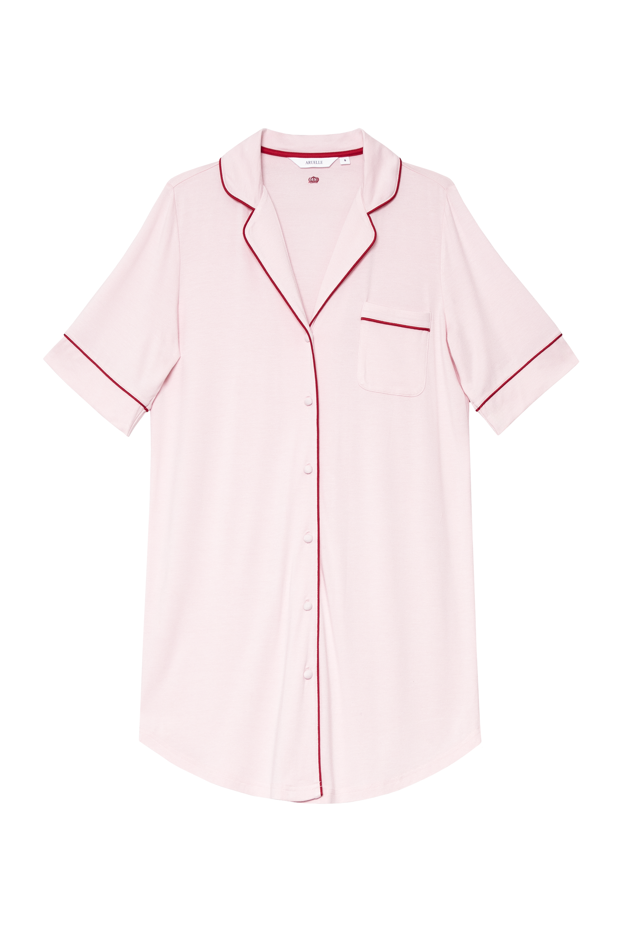 Soft and feminine, this pink nightdress combines comfort with classic pajama-inspired styling.
