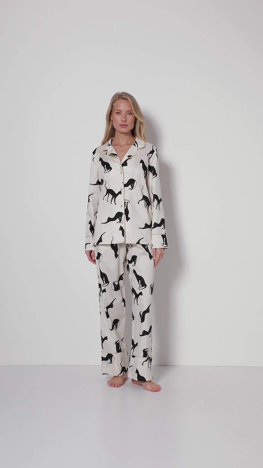 - Made of shiny cotton poplin fabric with a playful cat pattern.