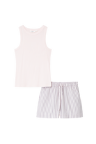 Soft and modern, this striped pale pink pajama set is perfect for warm nights and relaxed mornings.