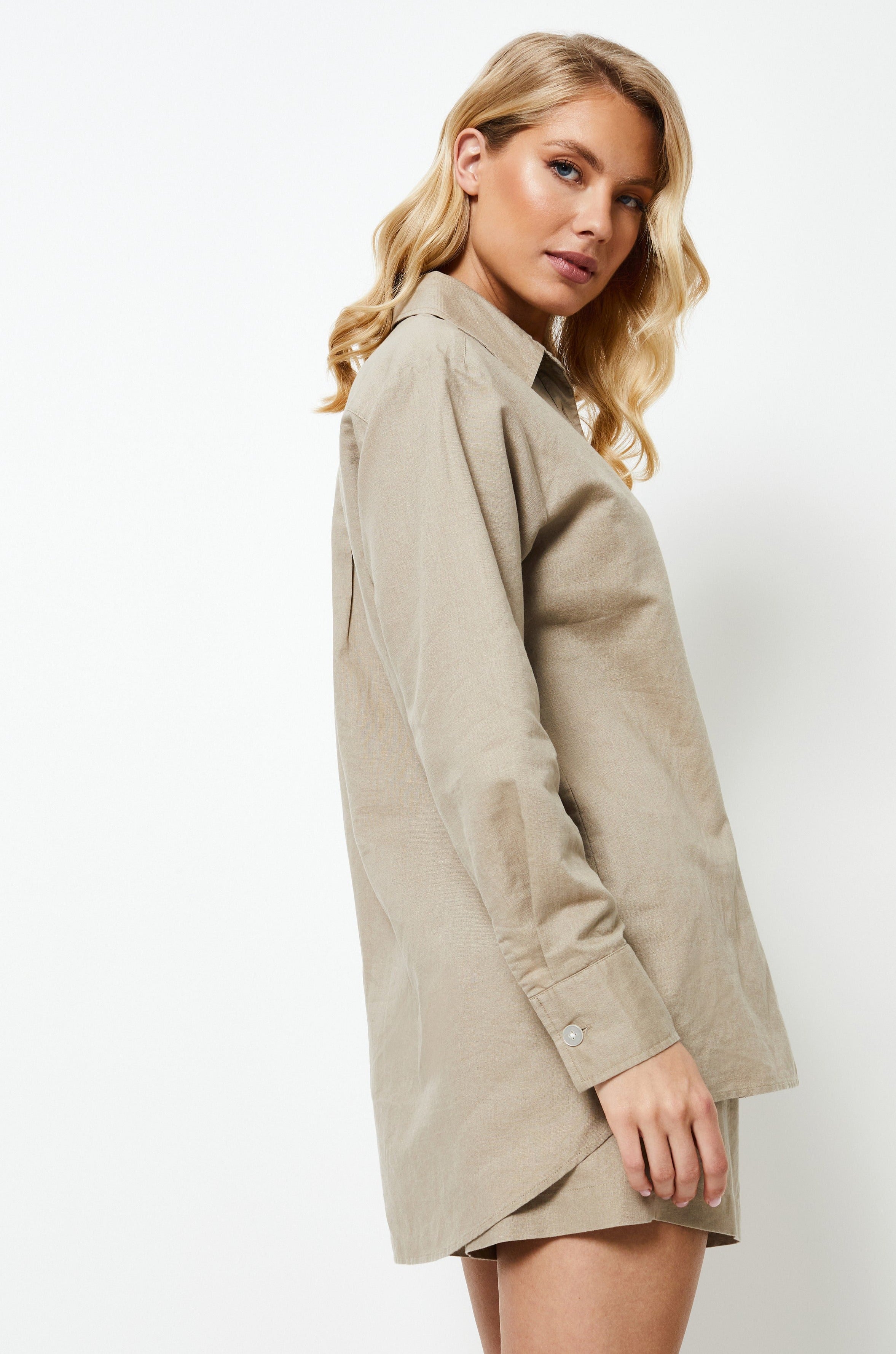 • The shirt-style top is elegantly designed with chest pocket and long sleeves finished with buttoned cuffs, lending a touch of refinement.