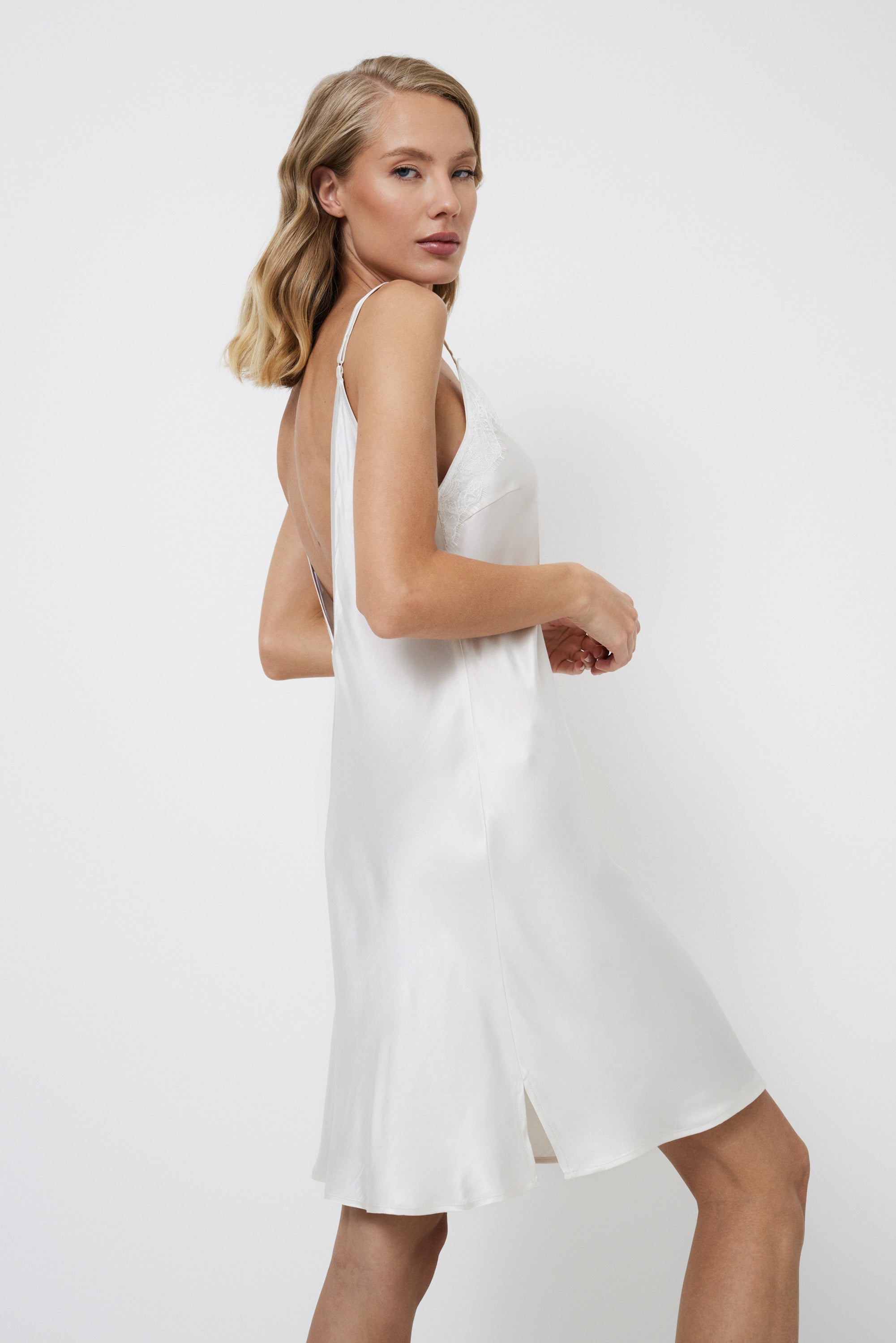 - Siūlės per vidurinę nugaros dalį ir šoniniai iškirpimai subtiliems, elegantiškiems akcentams.