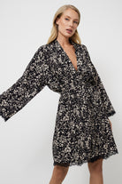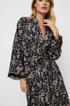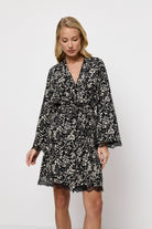 - Išskirtinis juodos ir smėlio spalvos gėlių raštas.
