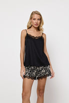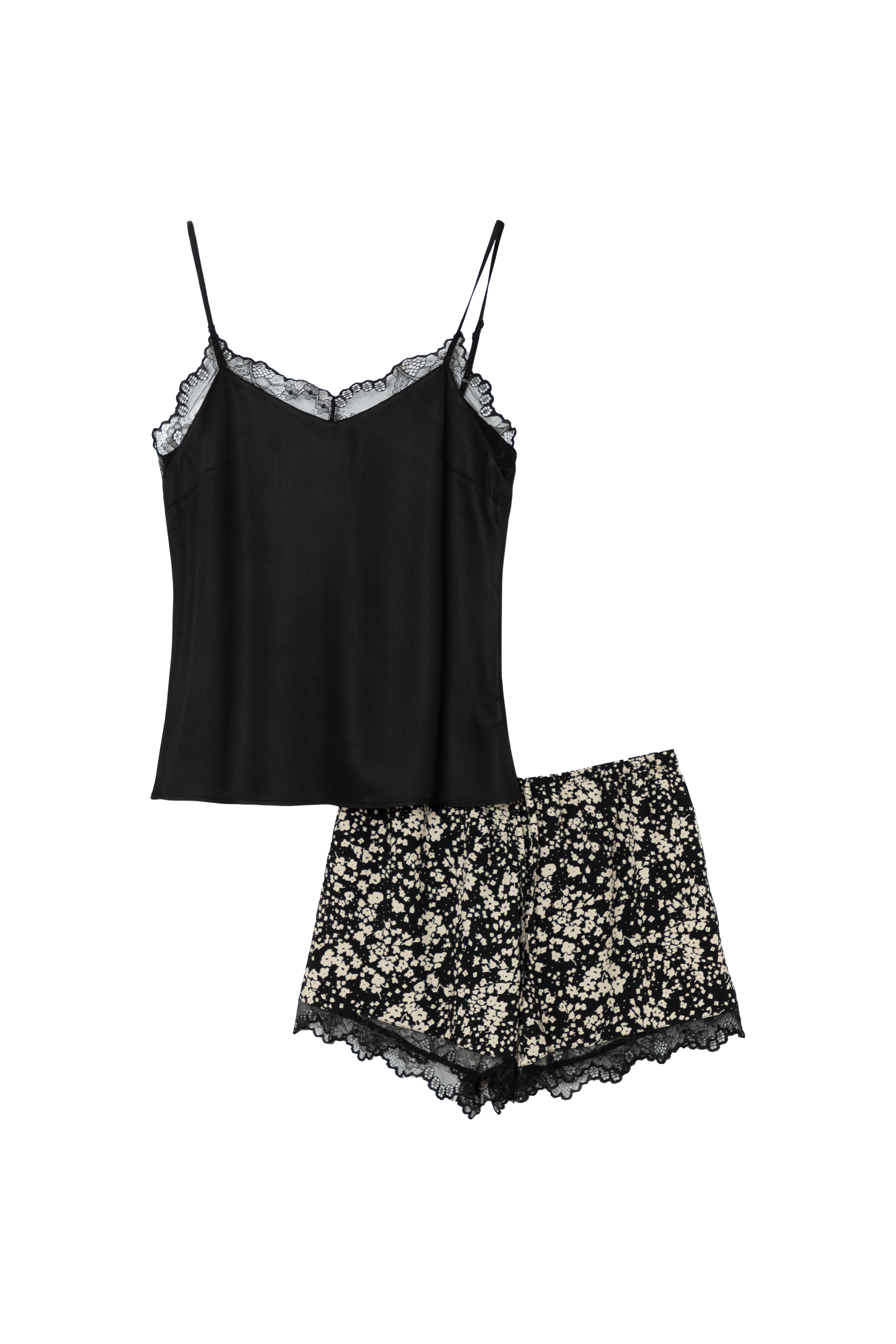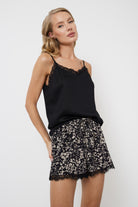 - Delikatus nėrinių kraštelis ties šortų apačia prideda elegancijos.