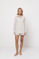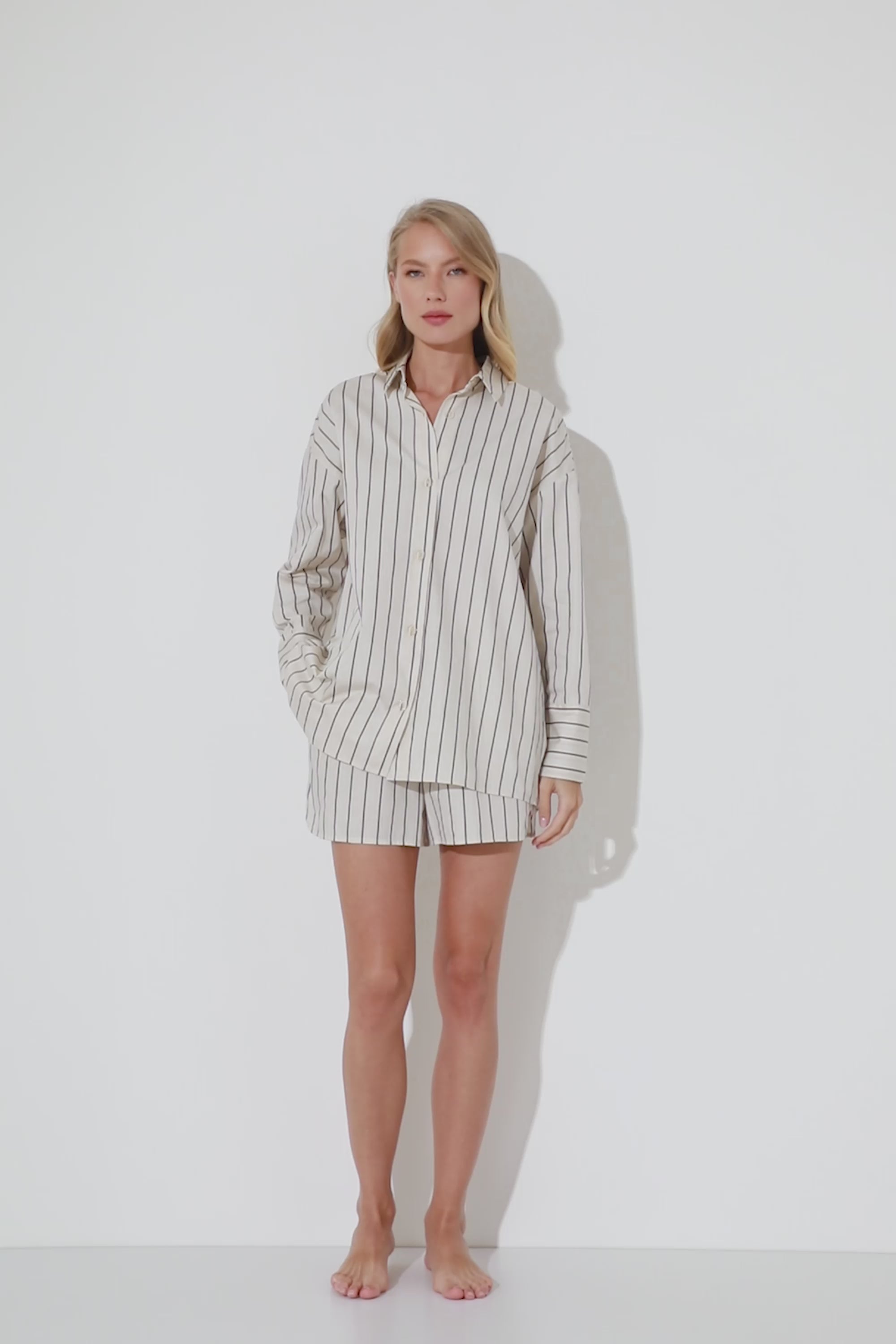 - Ekru spalva su juodomis juostelėmis suteikia subtilaus žavesio.